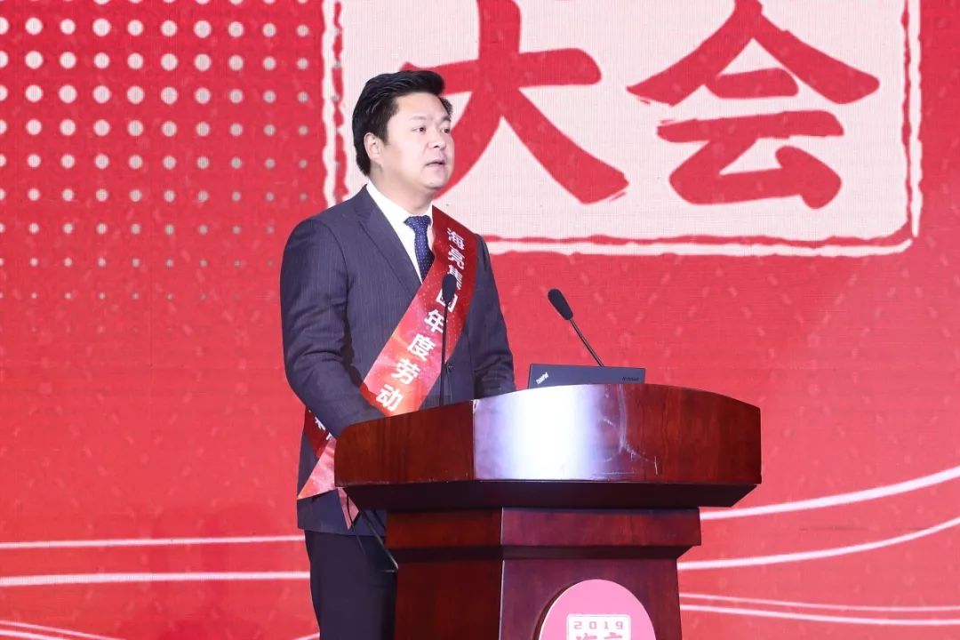 ▲海亮集團(tuán)副總裁潘利民為“優(yōu)秀員工”代表頒獎(jiǎng)