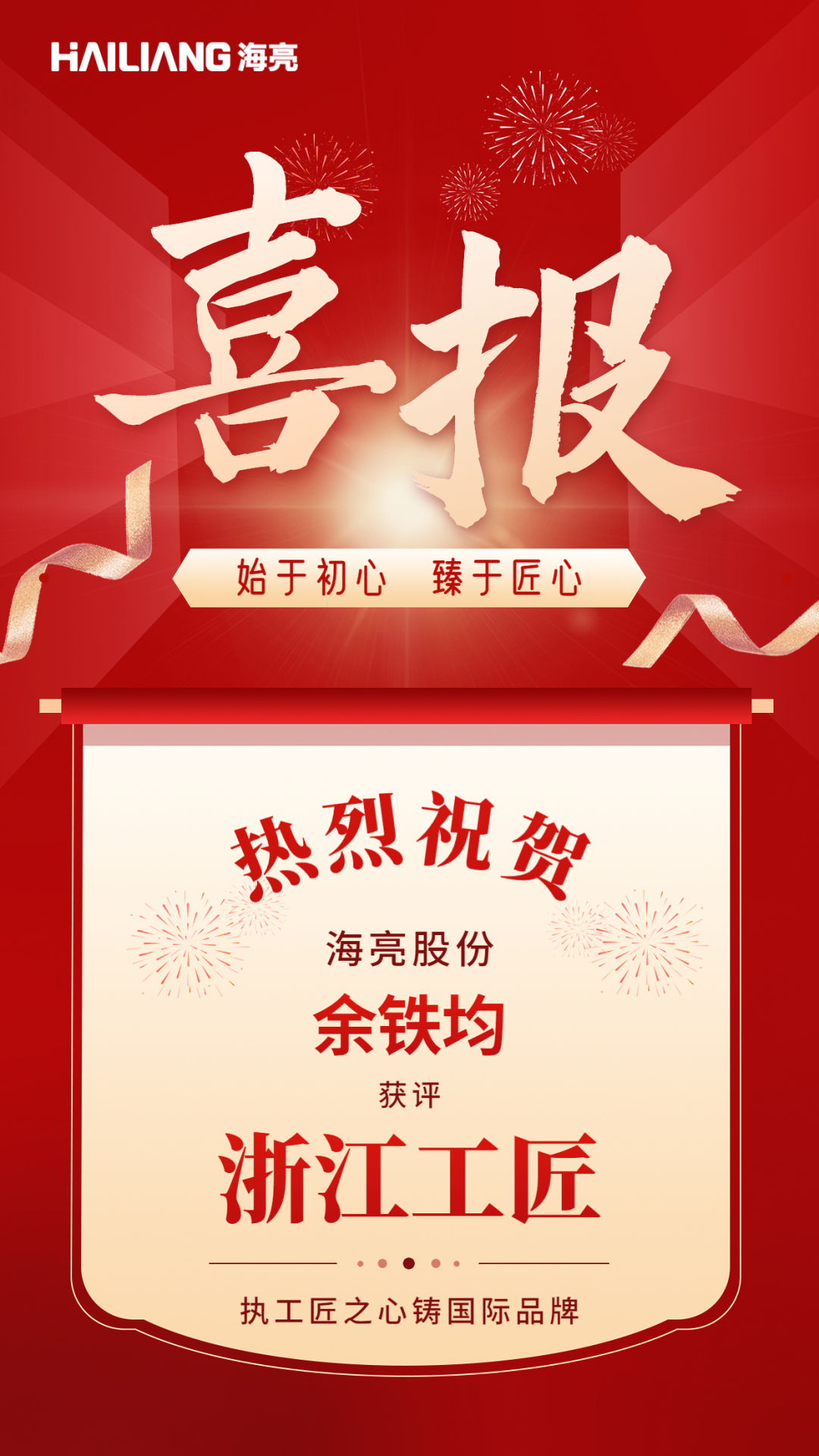 日前,浙江省人力資源與社會保障廳、浙江省總工會聯合公布了2022年“浙江工匠”培養項目人員名單。海亮股份研發工程師余鐵均榮獲“浙江工匠”稱號,充分展現了海亮人“文化為根、技藝為骨、匠心為魂”的新時代工匠風采。