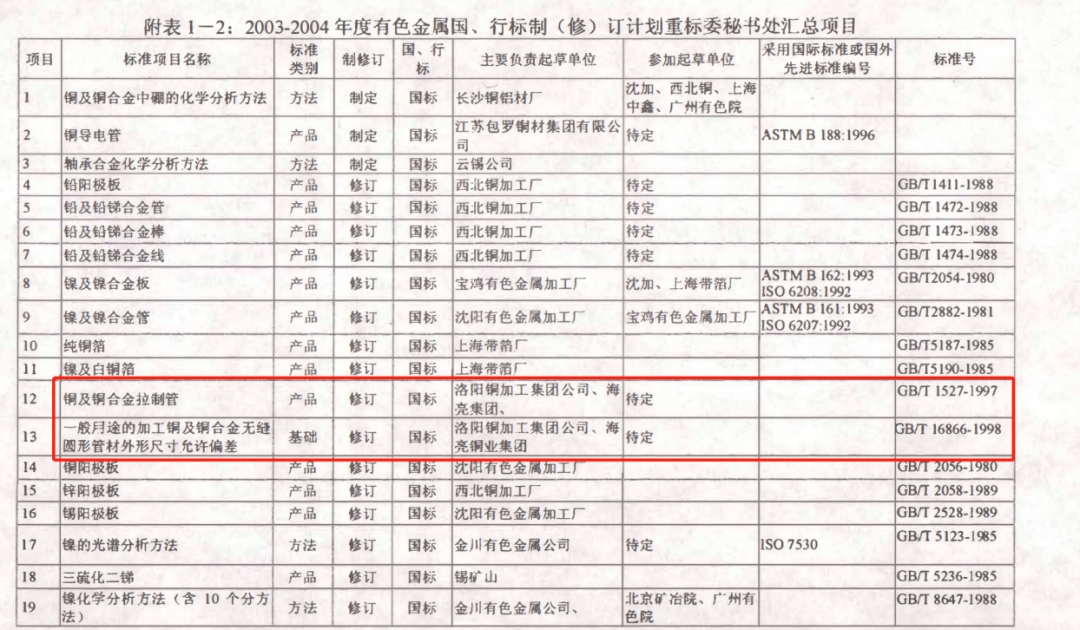 有色金屬標準化工作對提升企業有色金屬行業地位有著重要的作用和顯著的意義。海亮集團主持起草的第一份國家標準是GB/T1527《銅及銅合金拉制管》標準和GB/T16866《一般用途的加工銅及銅合金無縫圓形管材外形尺寸及允許偏差》標準,這兩項國家標準修訂標志著公司當時生產規模、技術水平已在同行業有著重要的影響,成為有色金屬行業第一家起草國家標準的民營企業。